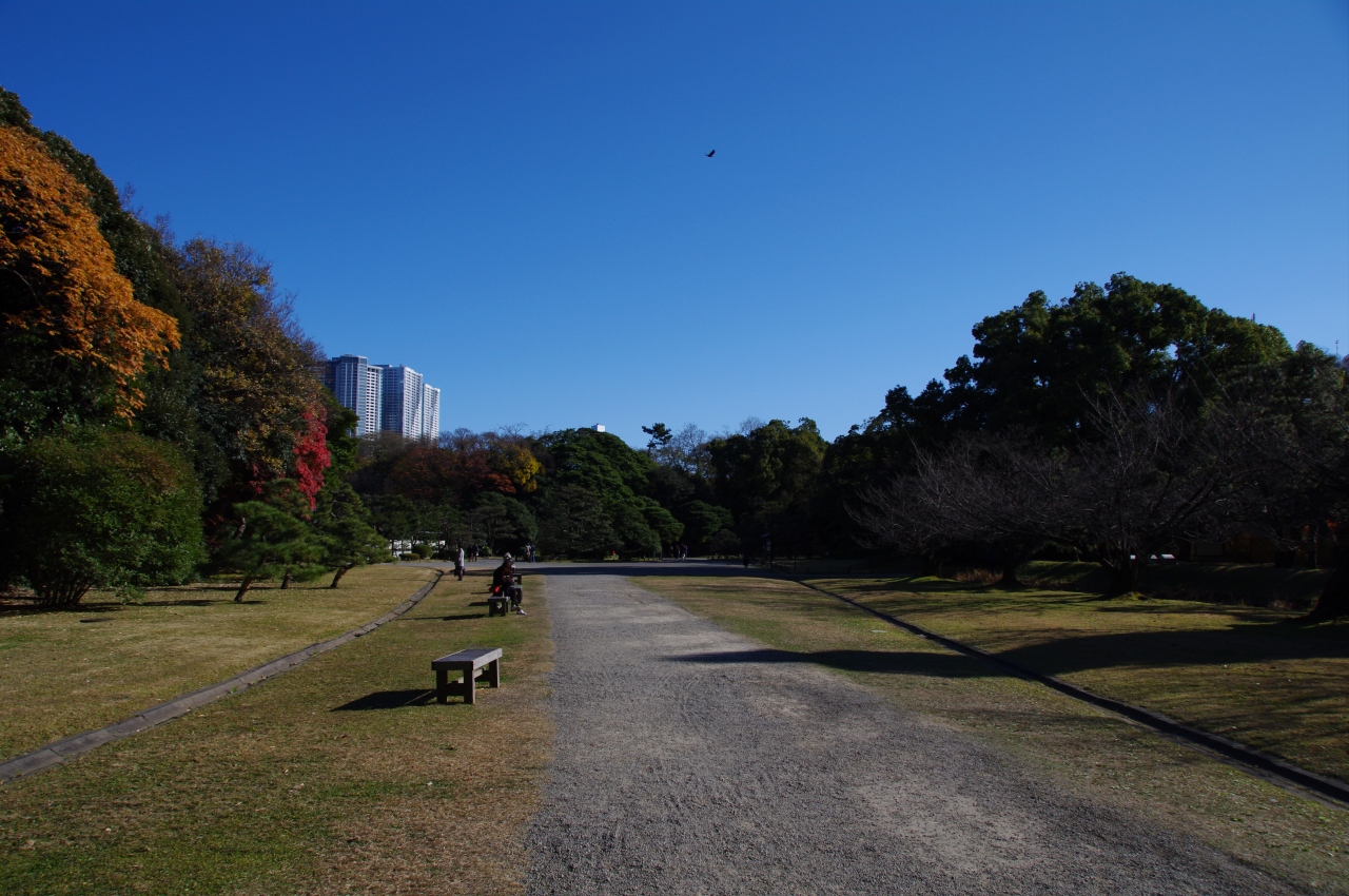 徳川将軍家の庭園であったものですが、今は汐留等の高層ビルに見下ろされています。向こう側にはタワーマンションや清掃工場の煙突も見えます。これが21世紀の景観なのでしょう。