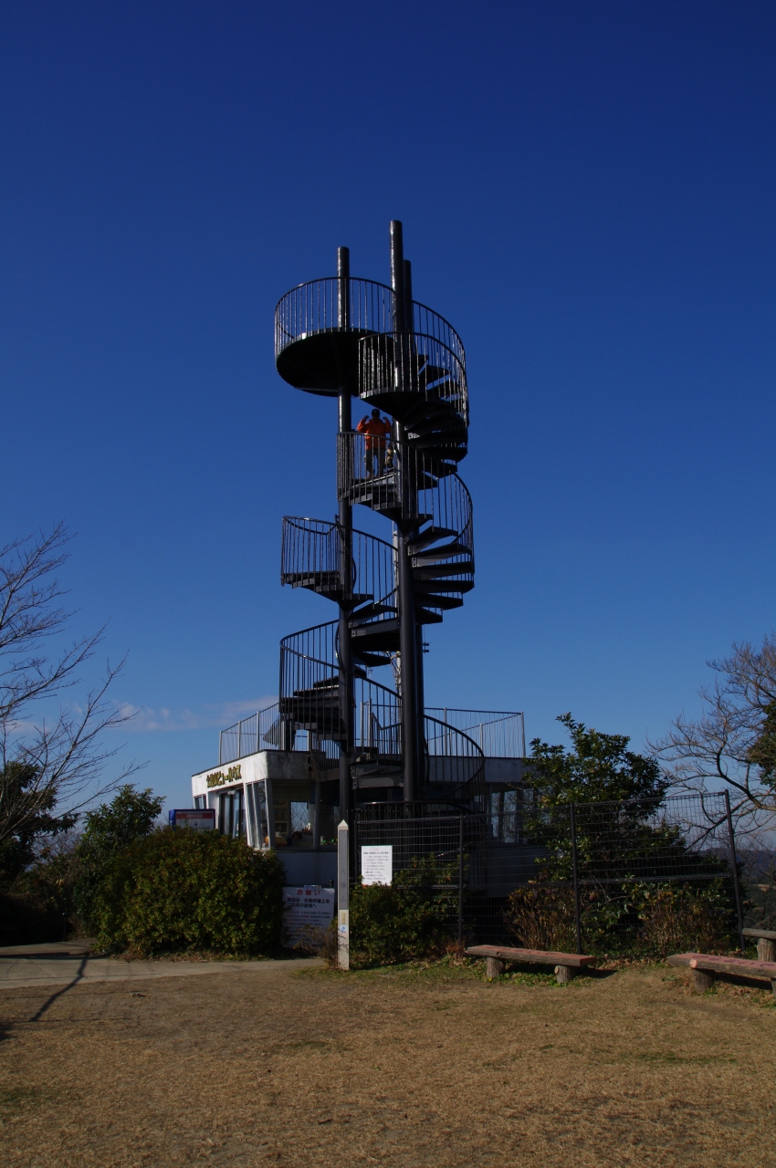 標高241mだそうです。三角点が有ります。鋼製の螺旋階段の有る展望台が建っています。展望台を上ってみました。素晴らしい眺望です。この日は午後が晴れました。