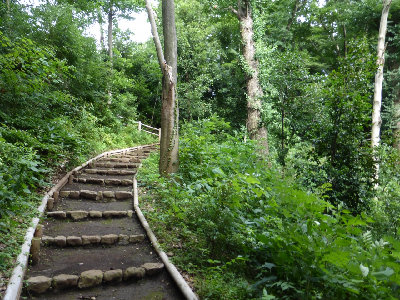 ここの緑地も高低差が有る斜面。道はまるで登山道のようです。人工的な庭園ではなく、自然の地のような感じがしました。