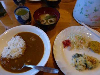 夕食はカレーライスで、おいしかった。おかわりが自由です。食べ過ぎに注意しましょう。味噌汁がちょっとしょっぱかった。登山で汗をかくからかな。