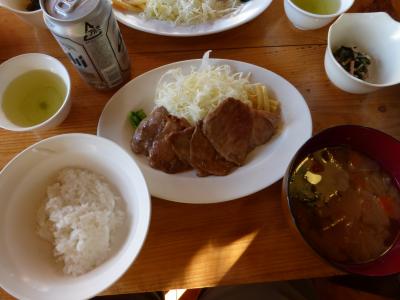 夕食は豚の生姜焼きで、おいしかった。味噌汁がちょっとしょっぱかった。登山で汗をかくからかな。