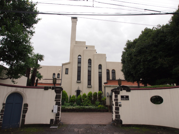 いわゆる昭和のモダン建築だと思います。タイル張りの外観。玄関を入ると、大きな階段が有ります。