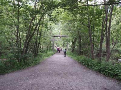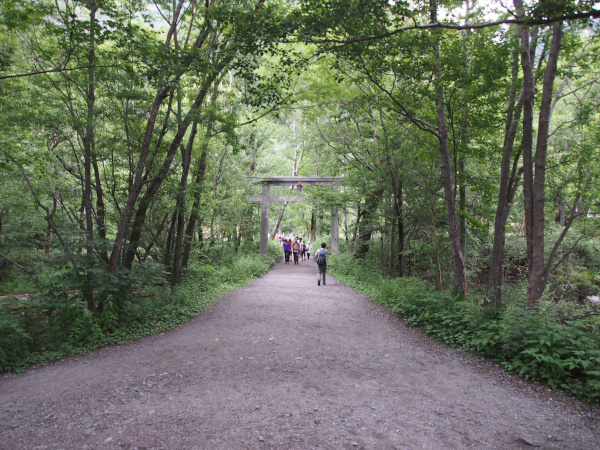 明神館前より参道が延びています。明神館より約600mの位置に有ります。森林の道を歩き、明神橋を渡り、訪れました。