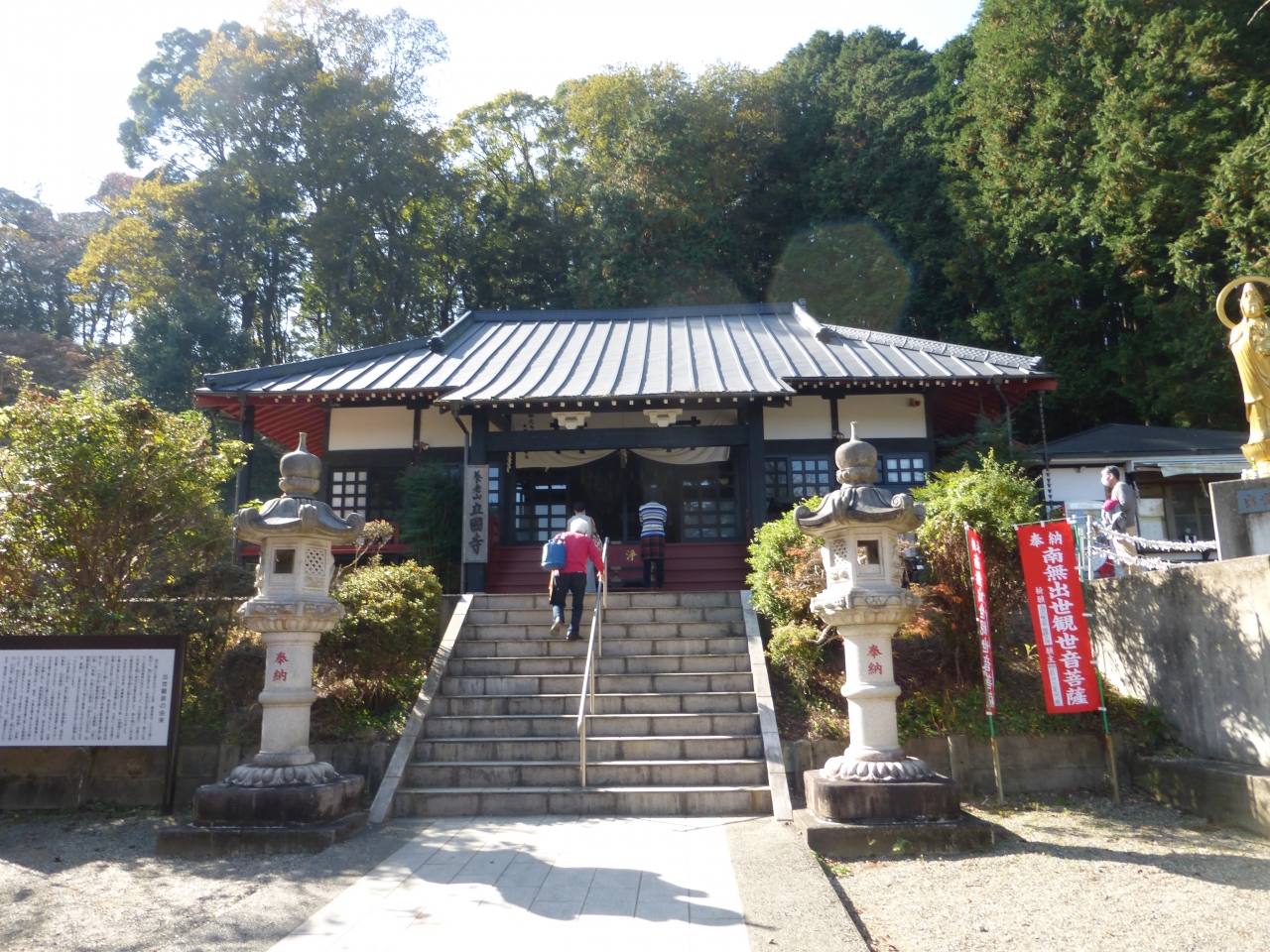 起伏有る地形です。金閣寺のような形で銀色屋根の建物が見えてきました。これが百体観音堂です。