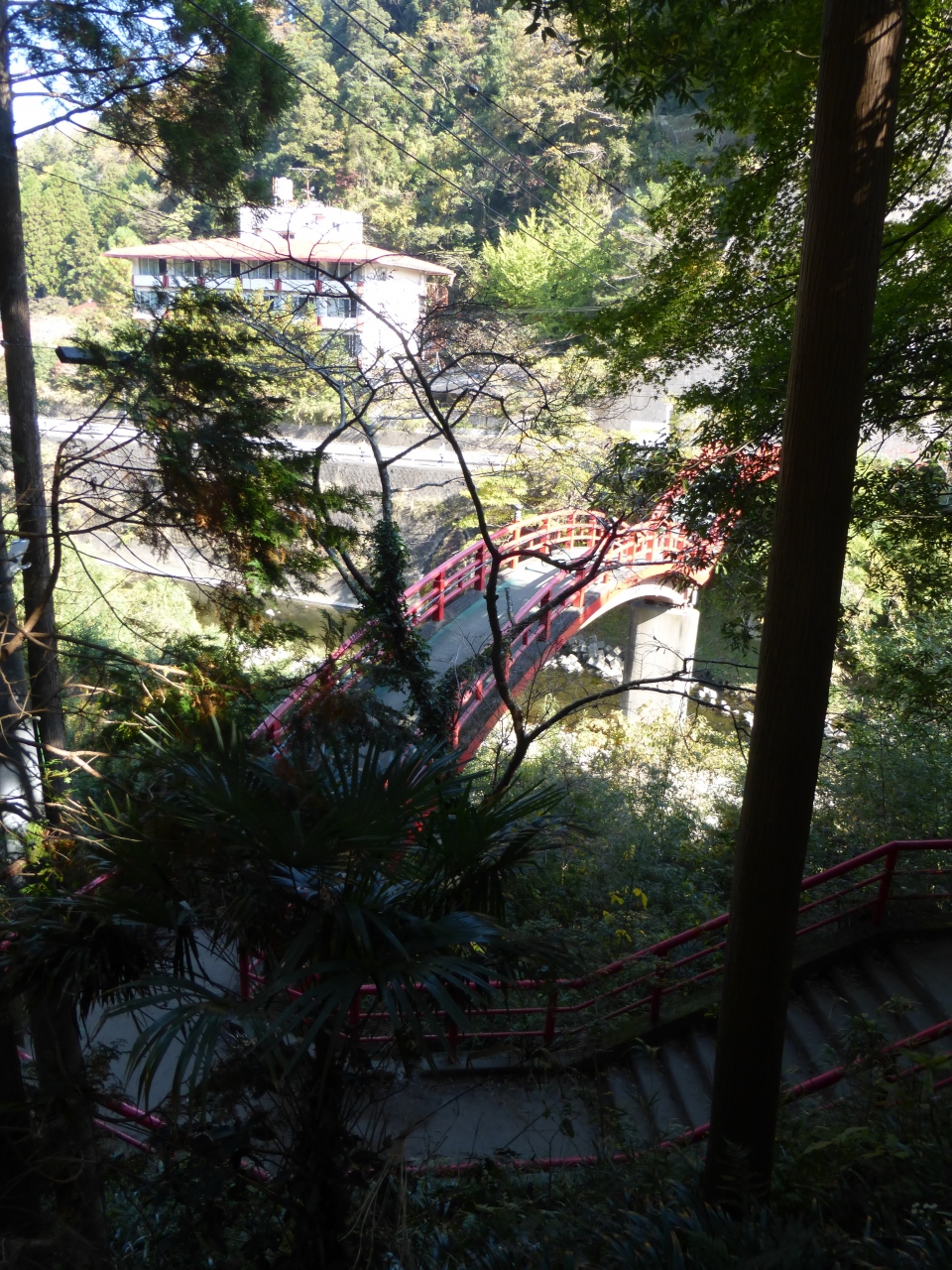 養老川に鮮やかな赤い観音橋が架かっています。2連の太鼓橋で、ちょっと歩きにくかった。