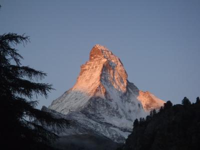 朝日を浴びたマッターホルン(4,478m)in ツェルマット(Zerm...