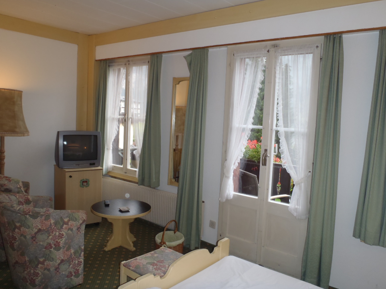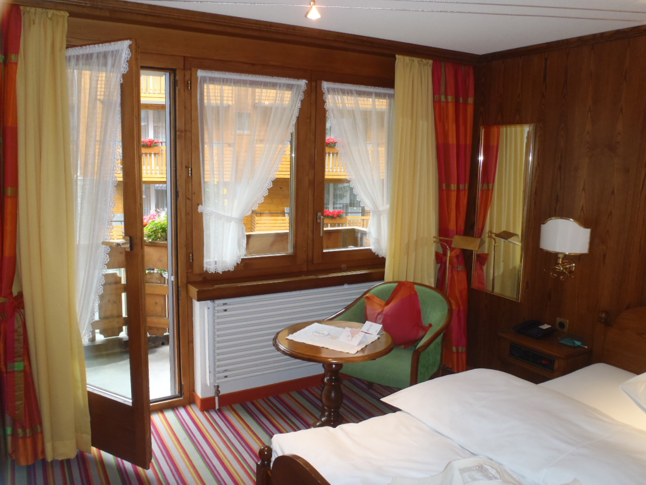 ダブルルームは南向きで、階が上の方の部屋からはマッターホルンを見ることができます。私もそうでしたが、反対側の部屋であっても、このホテルをお奨めするのは、ツェルマットの街中でマッターホルンを眺めるのに一番よいロケーションへ徒歩1分でゆけることです。
