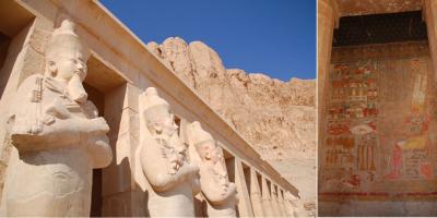 ルクソール西側ハトシェプスト女王葬祭殿が圧巻。レリーフに色も残っている...