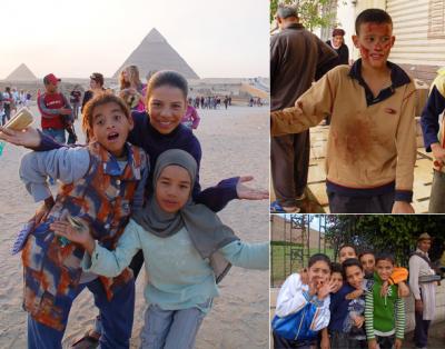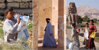 ルクソール西側メムノンの巨像と物売りのこどもたちルクソールからカイロへ...