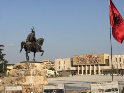 セルビアからの独立宣言の記念して置かれているモニュメントです(セルビアを始め、独立を未承認な国も多数有ります)。ときに、色を変えたり、アルファベットの配置を変えたりして、その変化を楽しんでいるようです。