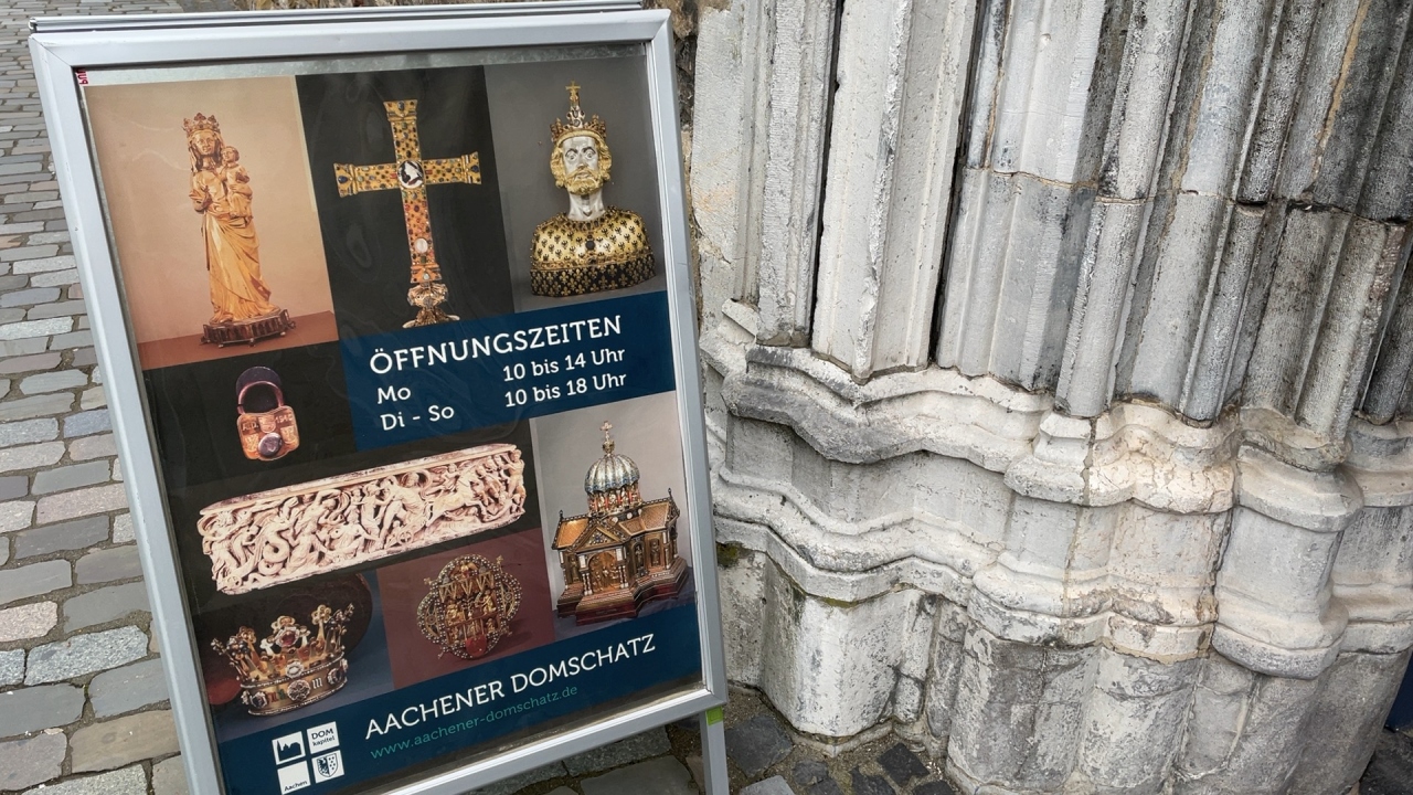 アーヘン大聖堂ゆかりの装飾品が展示されています。カール大帝が大聖堂を持つ絵や、まばゆい宝石が埋め込まれた煌びやかな宗教用品をみることができます。館内はちょっと暗く、説明文はよみづらい。荷物は入り口でロッカーに預けます。2コイン必要で、荷物を出すと戻ってきます。大聖堂と併せて必見の場所だと思います。