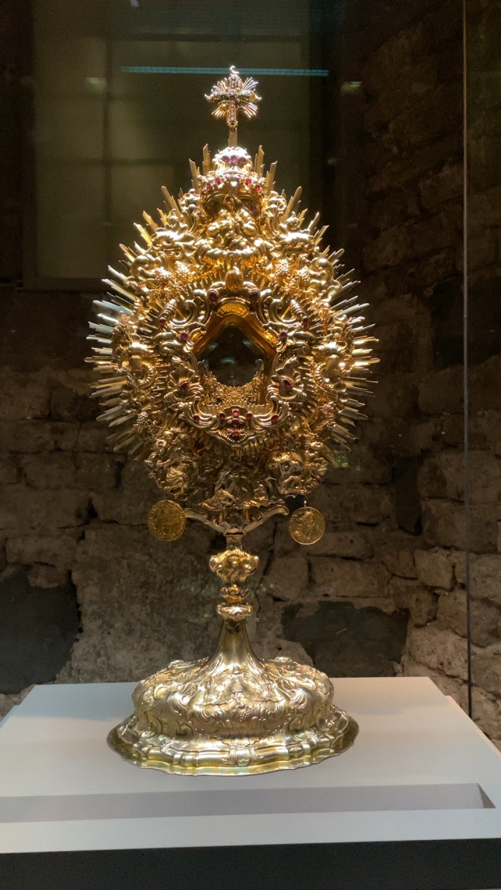 塔とのコンビチケットを10ユーロで買い、塔に上った後訪れました。大聖堂の外側に入り口があるはずなのに、何度探しまわっても入り口がない。営業時間内なのにおかしい、案内板も少ないし。仕方なく、大聖堂入り口の係員の人に聞いたら、ああって顔をして、大聖堂内から行かれるからって教えてくれました。何かあると外側の入り口を閉めてしまうのは、よくあることなのかもしれません。そのときは諦めずに、大聖堂内部を左に進み、宝物館に行くようにしましょう。宝物館、苦労して行った割には、展示は普通でした。アーヘンの宝物館を見た後だったかもしれませんが。ちなみに、見学後に出て確認すると、大聖堂の外側にある入り口は開いていました。閉まってたくせに。ご注意を。