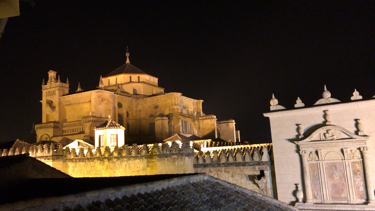 本当にメスキータが目の前です。入り口のところなので、ぐるっと回る必要もありません。周りにはバルやお土産屋がいっぱいあり、とても賑やかです。夜うるさいかと心配しましたが、遅くには路上にでていたカフェもしまり、静かになりました。窓からはライトアップしたメスキータがとてもきれいでした。2つ星ホテルですが、設備はまあまあです。お風呂はバスタブつきで、湯量と排水は問題なし。朝食は別料金で、パティオでコンチネンタルになります(ハム、チーズはあり)。フロントではオーナーとおぼしきおじさんががんばってます。感じはよいです。