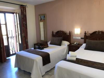 アルカサルやカテドラルを望む眺望付きのツインを予約。3階に宿泊しました。部屋はシャワー付きで、まあまあでした。コンチネンタルの朝食付き。ドーナツがおいしかった。暖かい料理はなし。ハム、チーズはありました。フロントの感じはとてもよかった。荷物も無料で預かってくれます。ここはアクセスがとてもよい。ロンダなどからのバスターミナルであるPrado de San Sebastianから徒歩5分。Sevilla Santa Justa駅までは市バス21で10分程度。この市バスのバス停はホテルの斜め前(Menendez Pelayo(Juzgados))。結構ひんぱんに来てました。旧市街へも公園を抜けて簡単に行くことができます。