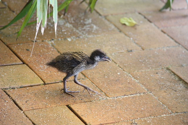 ナンヨウクイナ(南洋水鶏、英名:Buff-banded Rail)は、ツル目クイナ科に分類される鳥類の一種です。クイナの仲間は臆病でなかなか人前に姿を見せないので、今回、初めて見る事ができ、ラッキーでした。帰り際にはナンヨウクイナの幼鳥も通路に出てきてお見送り?してくれました。- 旅行時期