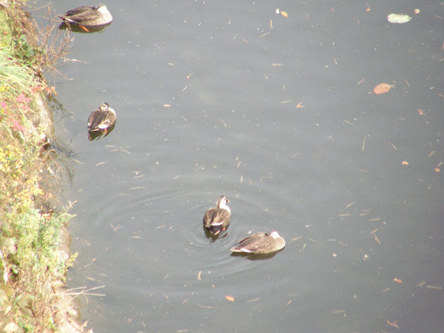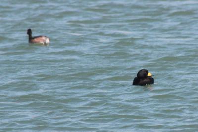今回は、クロガモのオスだけが見られました。オスは、その名の通り全身が黒くて、上嘴の基部はこぶ状に膨らんで黄色いので識別が容易です。メスは全体に黒褐色で、オスのような上嘴の黄色い膨らみは無いです。