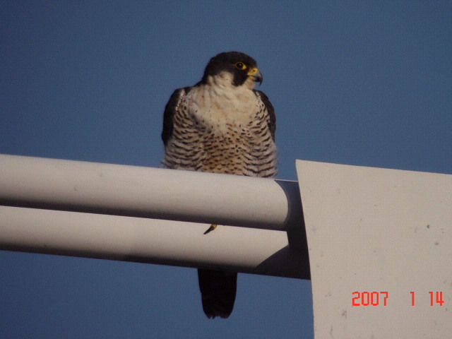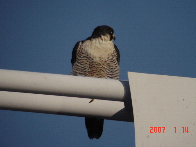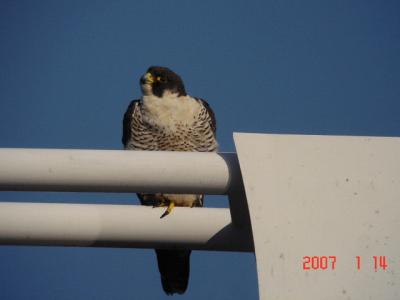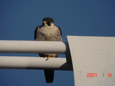 行方市の北浦大橋に、猛禽のハヤブサが止まっているとの情報を戴き、見に行ってきました。