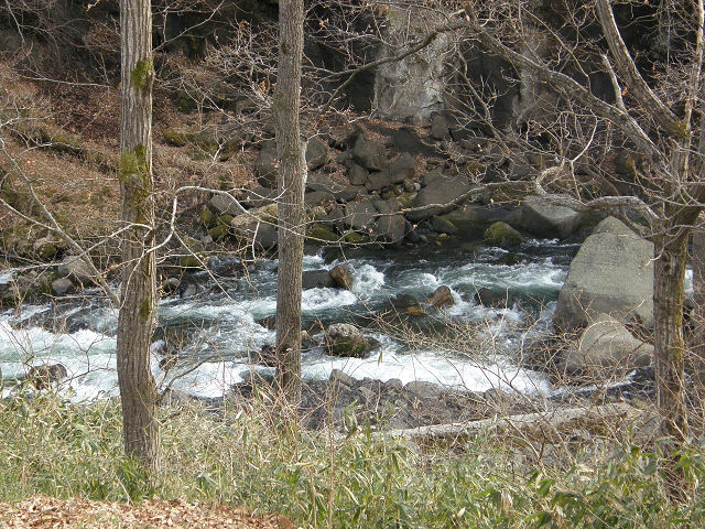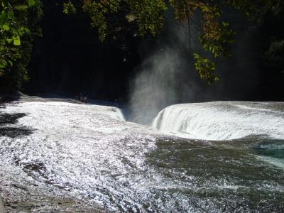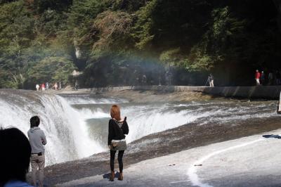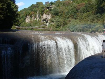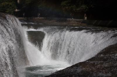 吹割の滝は、高さ7メートル、幅30メートルもあり、河床を割くように流れ、そこから水しぶきが吹き上げる様子からこの名が付けられたそうです。私達が訪れた時にも、滝壺から舞い上がる霧に日光が当たり、きれいな虹が見えました。