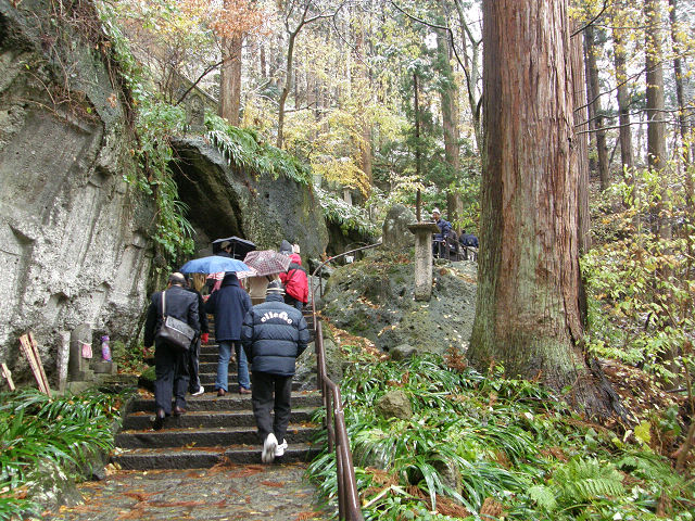 クラブツーリズムのバスツアーに参加して山寺(立石寺)に参拝した時、せみ塚を見ました。