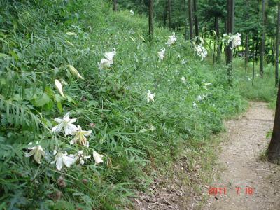 山百合は花壇に植えられているのではなく、自然の里山の林の中に咲いているので、通路も上り下りがあり、足腰の悪い方はちょっと大変かもしれません。