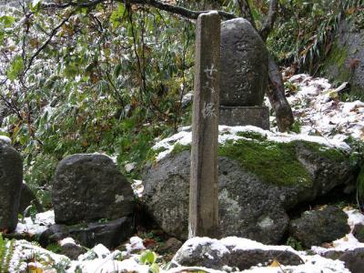 蝉塚は、俳人壷中(こちゅう)を中心とする俳諧仲間が、1751年に芭蕉が書いた短冊を埋めて石碑を建てたところだそうです。碑表に「芭蕉翁」、側面に「静さや岩にしみ入蝉の声」の句が刻まれています。