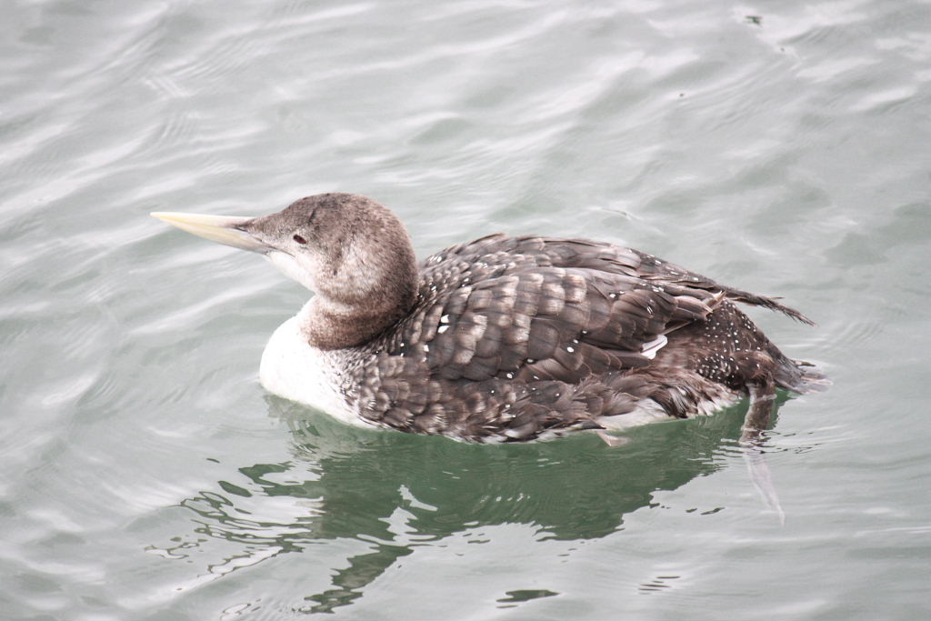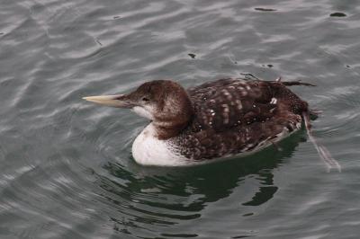 私は、ハシジロアビは今回で2回目ですが、前回は距離が遠くてまともな写真がとれなかったのですが、今回は岸辺近くまで泳いできたので、何とか証拠写真を撮影することができ、大満足の探鳥旅行でした。