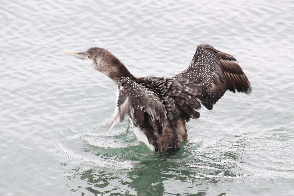 ハシジロアビ(嘴白阿比)は、アビ目アビ科に分類される鳥類の一種です。ユーラシア大陸極北部、北アメリカ大陸極北部で繁殖し、冬季はやや南下してスカンジナビア半島沿岸、千島列島から日本沿岸、北アメリカ西海岸などに渡り越冬する。日本では、冬鳥として渡来するが数は少ない。北海道から岩手県の三陸海岸付近にかけての地域では、比較的よく観察されるそうです。