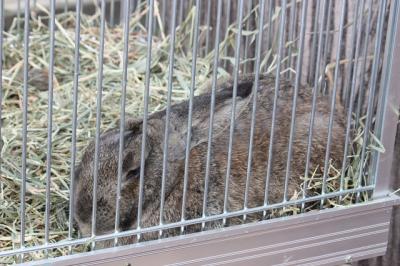 飼ウサギとの事だったので、だっこしたりできるのかもと勝手に思い込んで行きましたが、残念ながら檻の中に入れられていました。性格はおとなしく動きもゆっくりとしているとの事なので、ふれあい動物広場などで、見学者が自由にさわったり記念写真を撮ったりできれば良いのにと思いました。