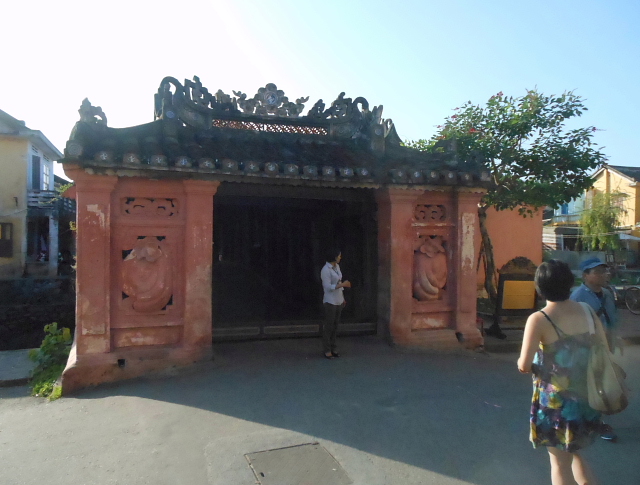 来遠橋(ライオンバシ、別名:日本橋)は、ホイアンのトゥボン川水路にかかる小さな木造の橋です。約400年前に日本人町があったとされる場所ですが、現在は日本人町の面影は見当たりませんでした。日本人が架けたそうですが、日本的というより中国風?の橋です。架橋後に何度も改修されているそうなので、改修工事で外観が中国風?になったのかもしれません。1593年に造られたそうですから、その後に日本が鎖国すると、当時の日本人町の人達はどういう運命を辿ったのでしょうか。