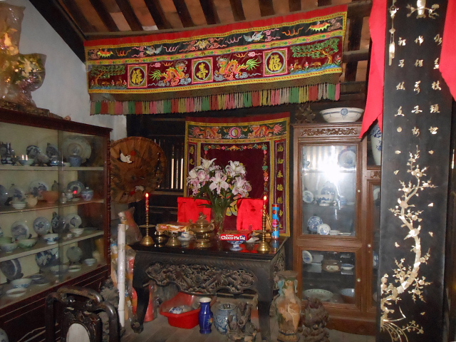 壁はベトナム、柱やドアは中国、屋根は日本と三国を折衷させた建築様式で、ホイアンの古建築様式の最も美しい民家の一つだそうです。