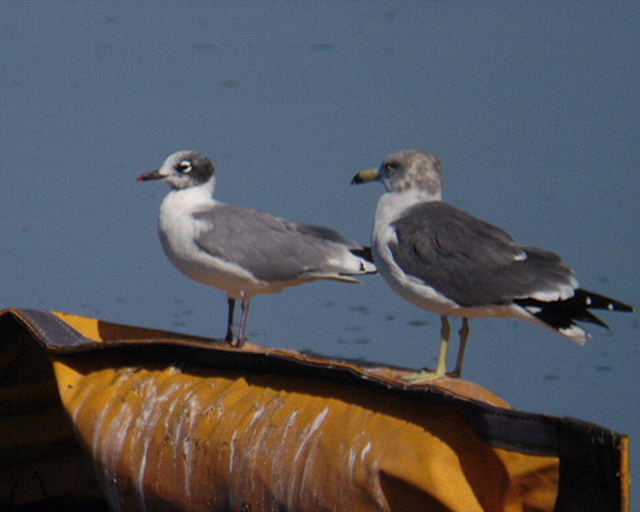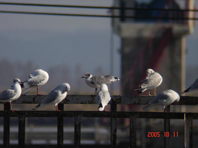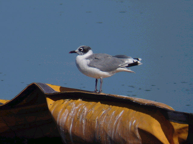アメリカズグロカモメは、傍にいたユリカモメに比べてもやや小さい程の小型カモメで、頭部は白色の羽毛が混じっており、成鳥夏羽から冬羽に換羽中だそうです。