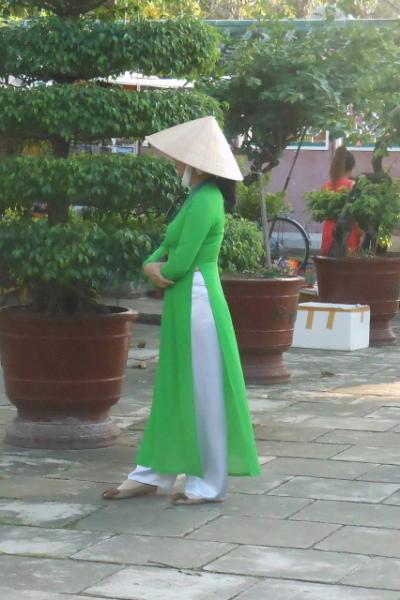 私は初めて訪れましたが、色鮮やかな建物が特徴で、内部には祭壇が設けられていました。三国志に登場してきそうな豪傑風の彫刻や、白鷺の像を配置した庭園などが気に入りました。また、日本の神社などで見かける狛犬のような獅子の石像もありましたが、狛犬のルーツは中国だったのかな? アオザイを着た女性も見かけました。- 旅行時期