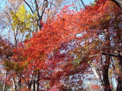 お目当ての野鳥はそれほど見られませんでしたが、真っ赤な紅葉が見事でした。