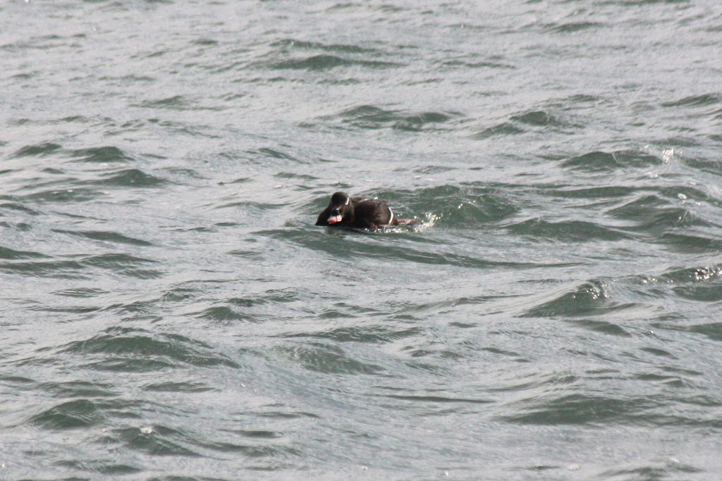 今回、波崎新港にはビロードキンクロの雄1羽だけでしたが、九十九里浜の一松海水浴場では、数羽の群れで見られました。