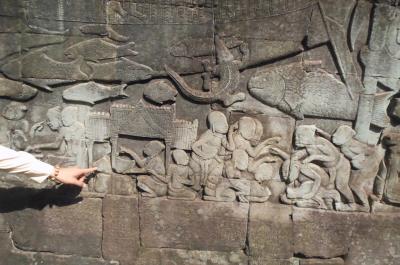 バイヨン寺院には、観世音菩薩の四面塔が49塔もあるそうです。ガイドさんが第一回廊のレリーフやデバターの説明をして下さいましたが、写真を撮るのに夢中になっていて、説明をゆっくり聞く余裕がありませんでした。- 旅行時期