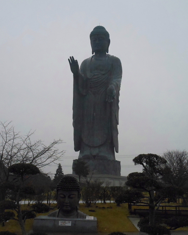 牛久大仏はブロンズ(青銅)製大仏立像で、全高120m(像高100m、台座20m)あり、立像の高さは世界で3番目だが、ブロンズ立像としては世界最大だそうです。