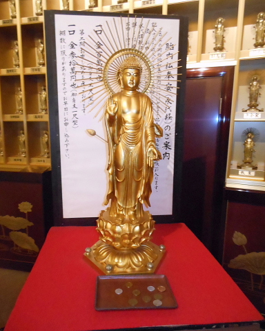 大仏の内部には約3,400体の金色に輝く胎内仏が整然と並んでいました。この胎内仏は、大(3尺型)が100万円、小(1尺型)が30万円の永代供養費を納めれば戒名を入れて納める事ができるそうです。- 旅行時期
