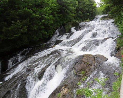 滝というと、華厳の滝に代表されるような垂直な崖を落ちる滝を思い浮かべますが、ここの滝は、渓谷の急流をもう少し斜面を急にしたような感じで、こういう滝を渓流爆というのを初めて知りました。この竜頭の滝は、華厳滝、湯滝と共に奥日光三名瀑のひとつとされているそうですので、奥日光にこられたら是非、立ち寄る事をお勧めします。