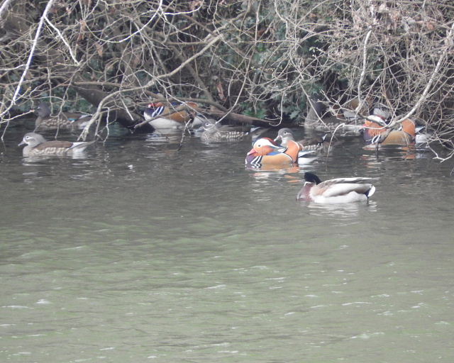 水郷県民の森には、ドングリの実がなるコナラの樹木がたくさんあります。オシドリはドングリが大好物なので、時々群れでやってきます。今回も電話を戴いた日には、オシドリが150羽程入っていたそうです。池の周りには樹木が生い茂っており、オシドリは木陰に隠れて休息するので、日によって見られる数が大幅に変わります。私が見に行った時はオシドリは30羽程しか見られませんでした。- 旅行時期