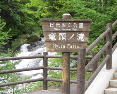 竜頭の滝(りゅうずのたき)は、男体山の噴火によってできた溶岩の上を210メートルにわたって流れ落ちる滝で、幅10mほどの階段状の岩場を勢いよく流れるので渓流爆というそうです。滝壺近くが大きな岩によって二分され、その様子が竜の頭に似ている事からこの名がついたそうです。5月~6月は赤紫色のトウゴクミツバツツジが咲き誇るお薦めの季節。また9月下旬頃からは紅葉の名所として人気が高く、モミジやシナノキなどに彩られた美しい景観が楽しめるそうです。