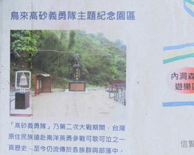 この烏来高砂義勇隊主題紀念園区は、第二次世界大戦中に日本軍として戦地に赴き戦死した高砂族の兵士を慰霊したもので、日本語の説明文などもありました。