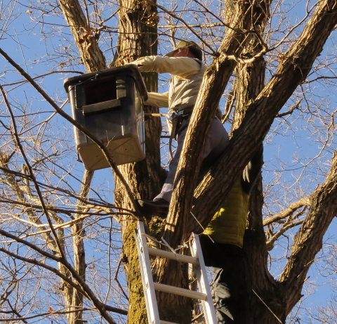 2013年12月に、水郷県民の森でフクロウの巣箱の設置作業をしました。
