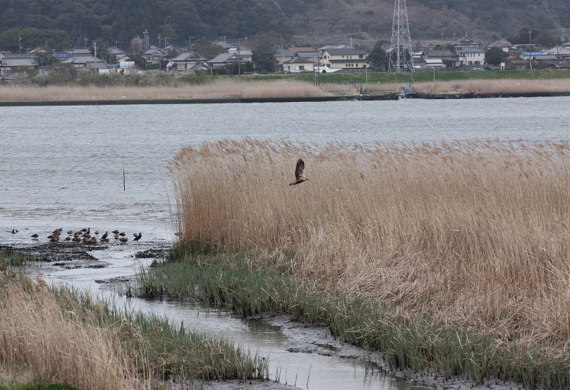 利根川にも冬季には多くの鴨が北国から渡来しますが、広大な河川敷の葦原は生物の宝庫で、食物連鎖の頂点に位置する鳥類も多く見られます。鷹の仲間のチュウヒやハイイロチュウヒ、ノスリ、サシバなども見られ、絶滅危惧種の野鳥オオセッカやコジュリンも見られます。