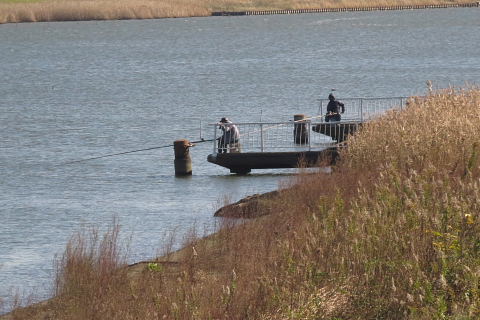 公園内は工事の影響か、または初冬の風が冷たいからか散歩する人もあまり見かけませんでしたが、公園の端の鹿島港岸壁で釣りを楽しむ人が数人いました。