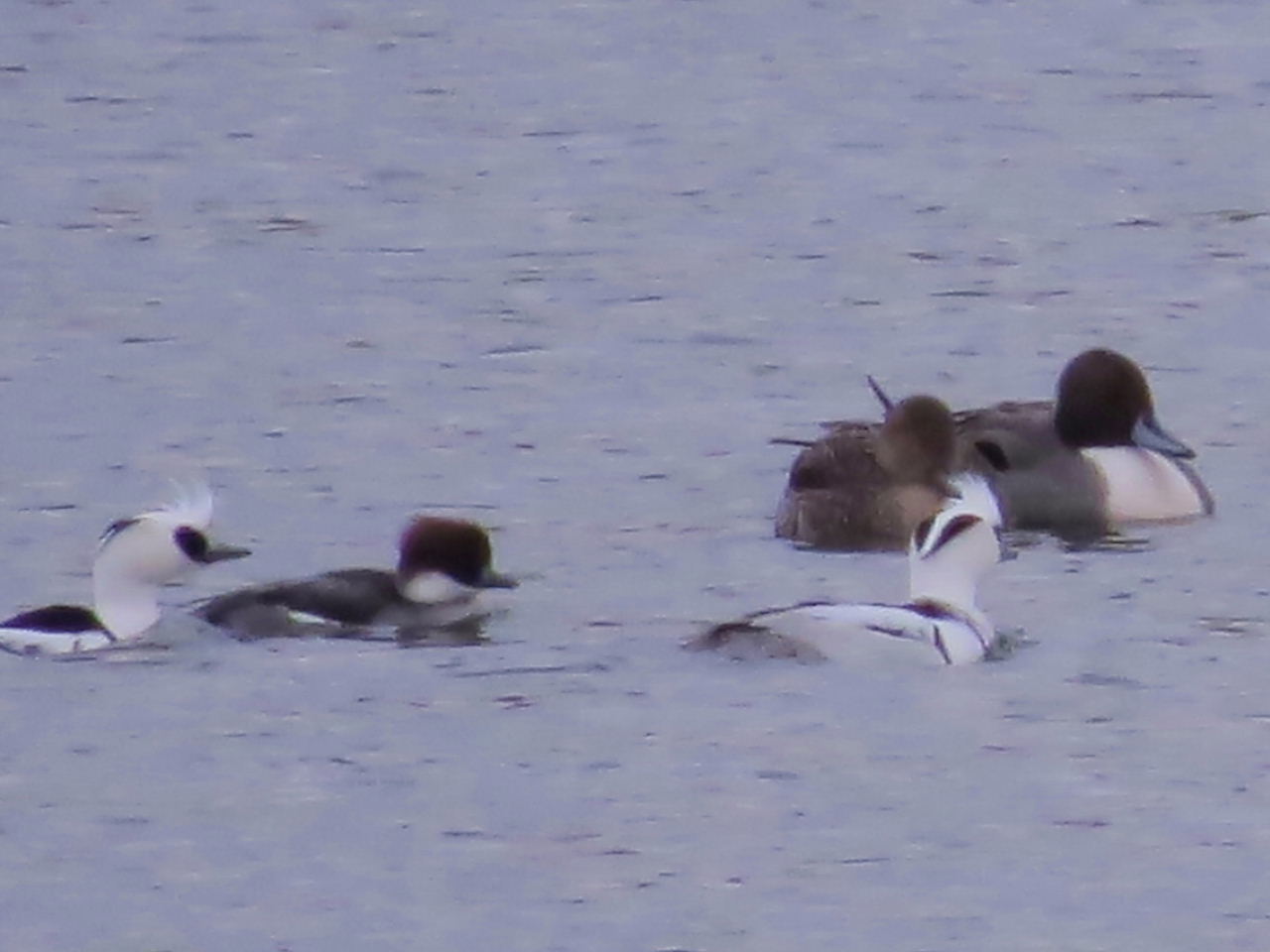 今回もオナガガモやマガモなどに交じって、10羽以上のミコアイサが見られました。- 旅行時期