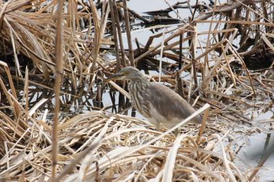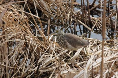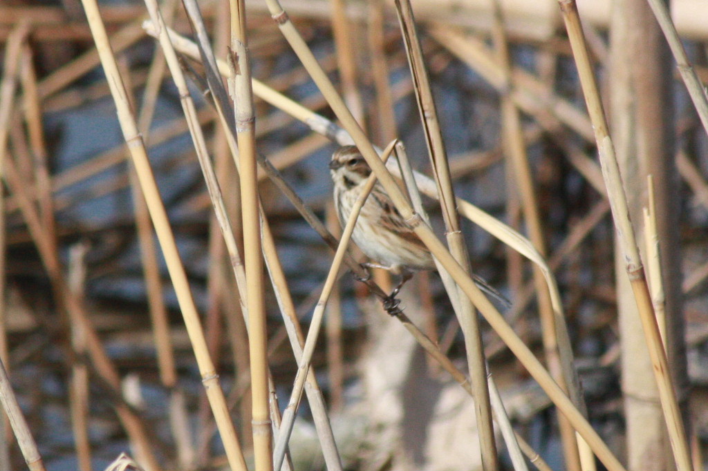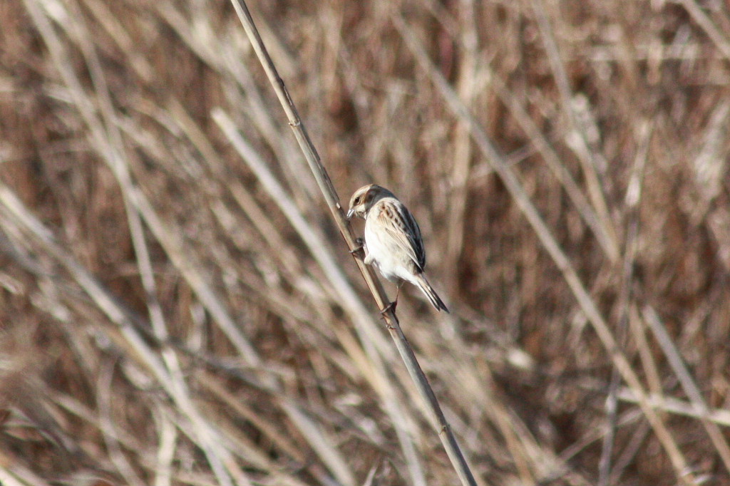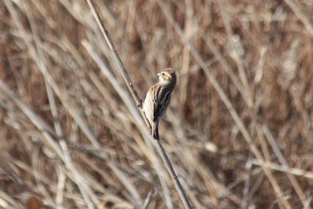 涸沼の湖岸には葦原が広がっている場所が多いので、冬季にはオオジュリンもよく見られます。今回も、葦原の中で何度もオオジュリンを見る事ができました。