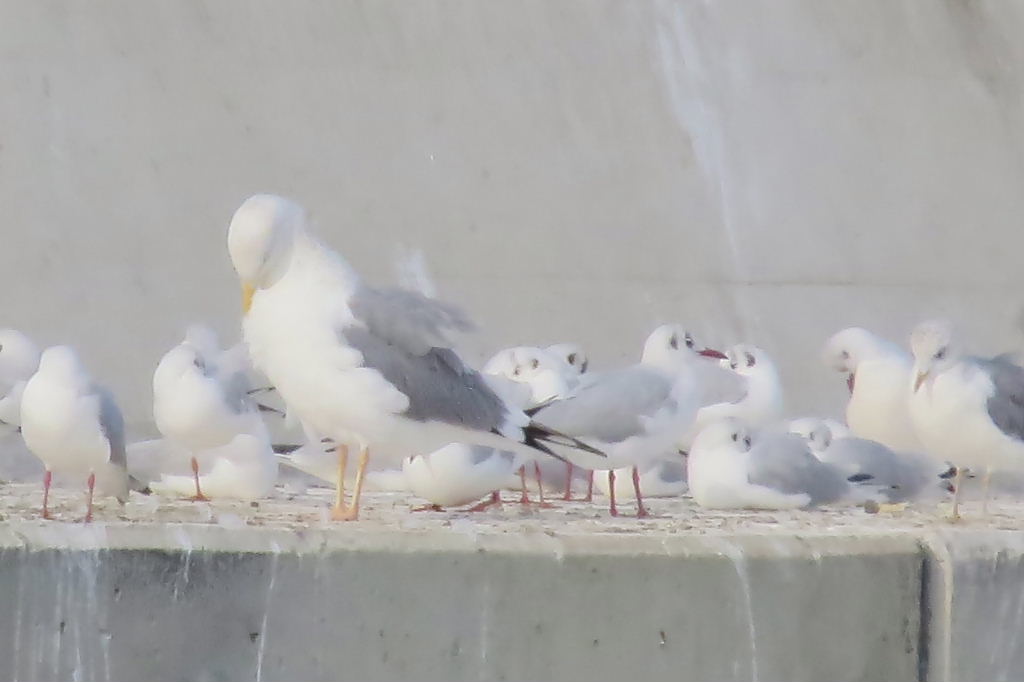 今回、日本で見られる大型カモメ4種(セグロカモメ、オオセグロカモメ、ワシカモメ、シロカモメ)と、ウミネコ、ユリカモメ、カモメの合計7種が見られました。