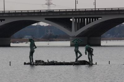 ところが、ここでは公園なので人馴れしているのか人間を見ても逃げません。逃げないどころか、マガモ達と一緒に私達に近づいてきました。鳥の餌を持っていなかったので、給餌できませんでしたが、きっと地元の方が給餌しているのでしょう。