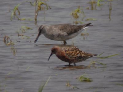 今回、オオハシシギを見たのは、浮島湿原に隣接する水田でしたが、他にもツルシギやアオアシシギ、モズ、キジ、コチドリなどが見られました。- 旅行時期