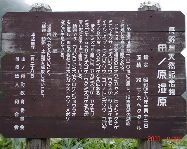 田ノ原湿原は、標高1610mで高山植物や希少動物が生息し、昭和48年長野県の天然記念物に指定されたそうです。佐久間象山がこの湿原で稲作の研究をしたことが田の原湿原の由来との事です。
